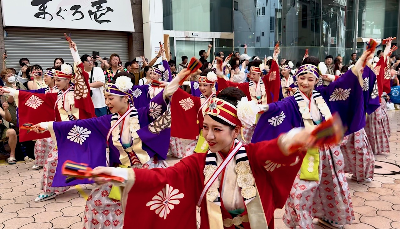 現在は8月9日(前夜祭)、10・11日(本祭)、12日(後夜祭・全国大会)の4日間で、188チーム・踊り子1万8千人が市内16会場で演舞を披露します。